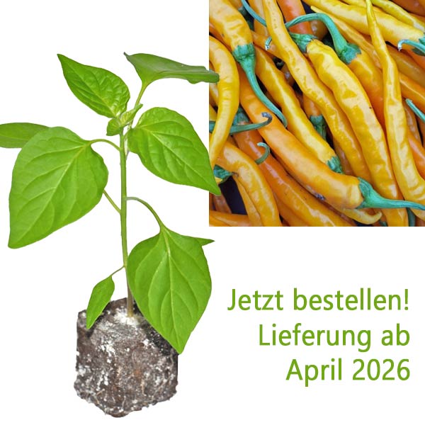 Care: Chillies need lots of sunlight and heat to grow optimally. The basic soil fertilization is done with horn meal. For the weekly fertilization of the irrigation water, we recommend our Organic Chili Fertiliser. Chillies do not tolerate waterlogging (make sure that the irrigation water is drained well!). Chili plants should be placed in a sunny, sheltered place with at least 6 hours of sunlight per day, if not more. Leave the plants outside at the earliest 2 to 3 weeks after the last frost.